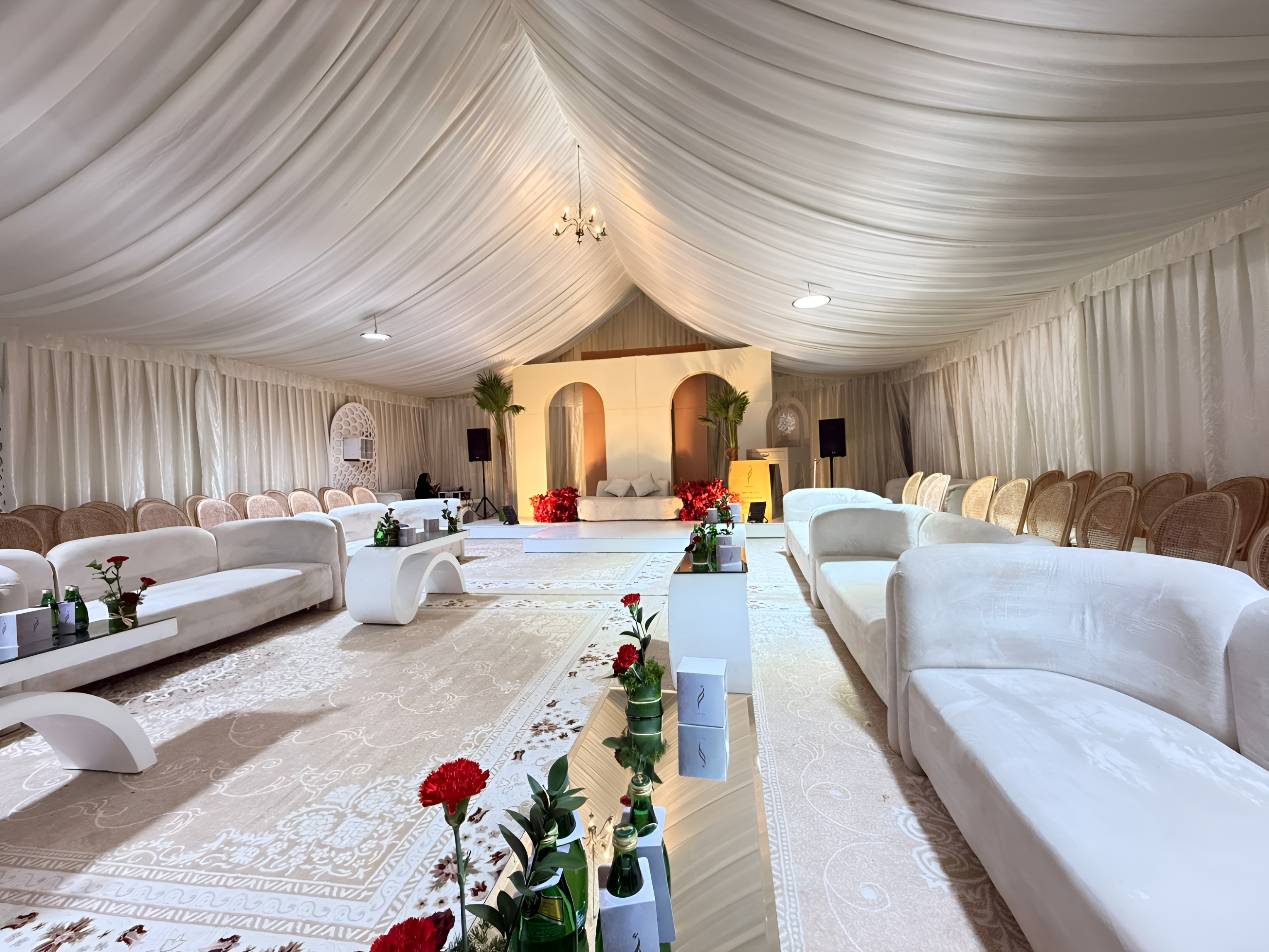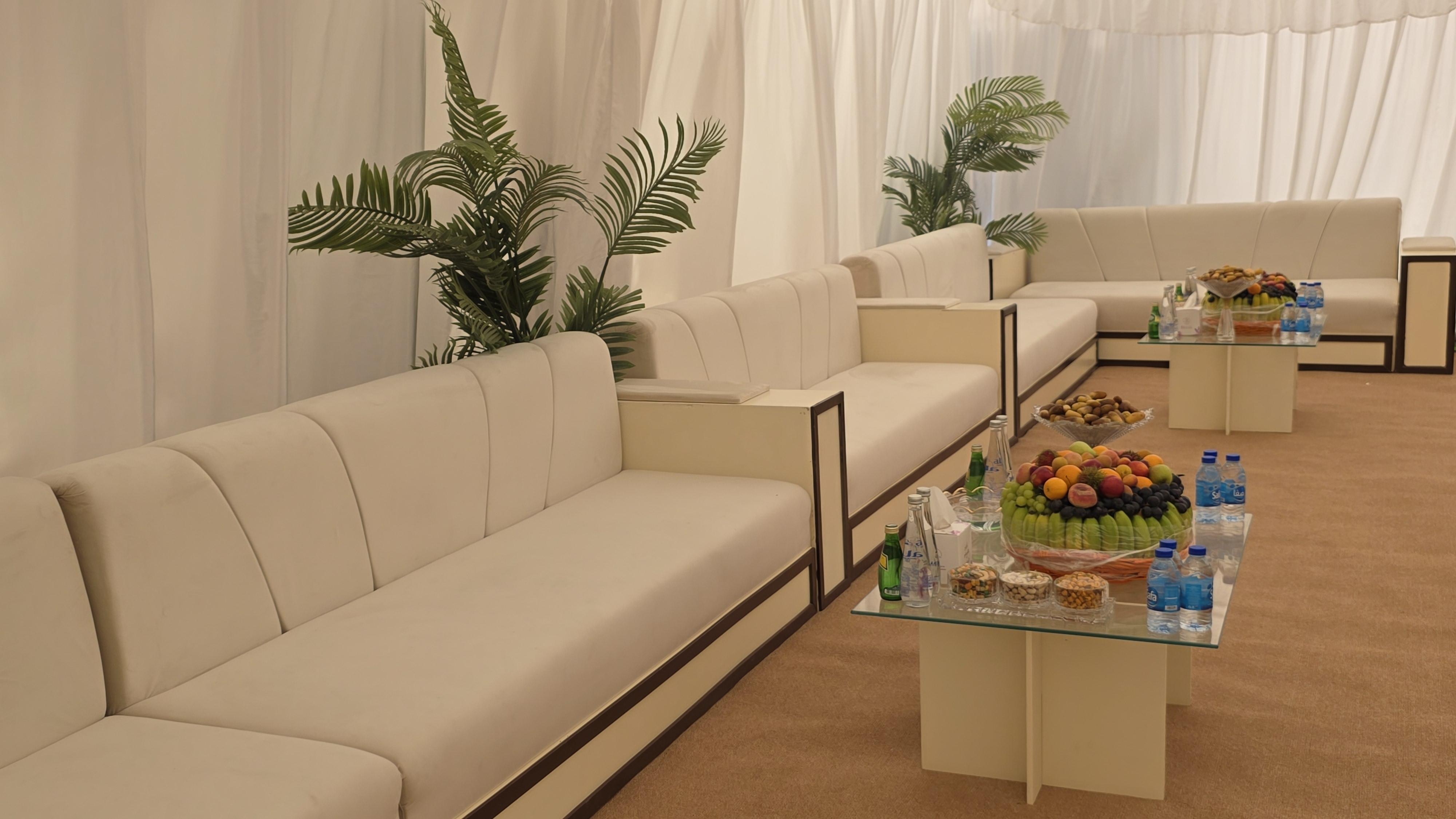 تنظيم ديكور وتجهيز طاولات وكراسي وإضاءة.